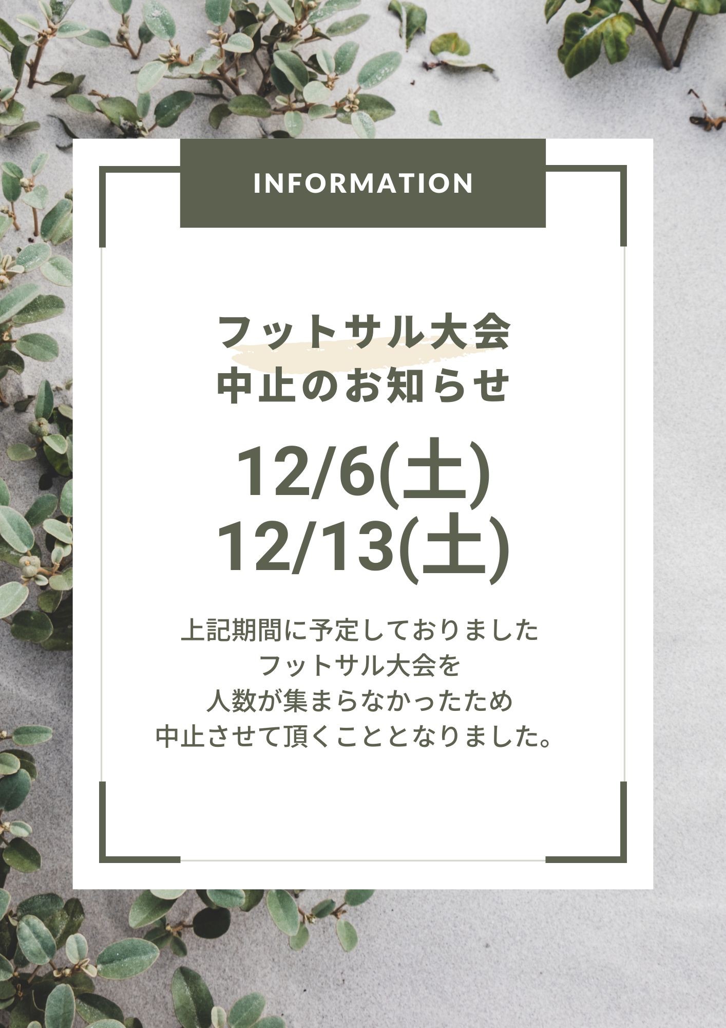 フットサル大会は参加者が少なかった為、中止とさせていただきます。